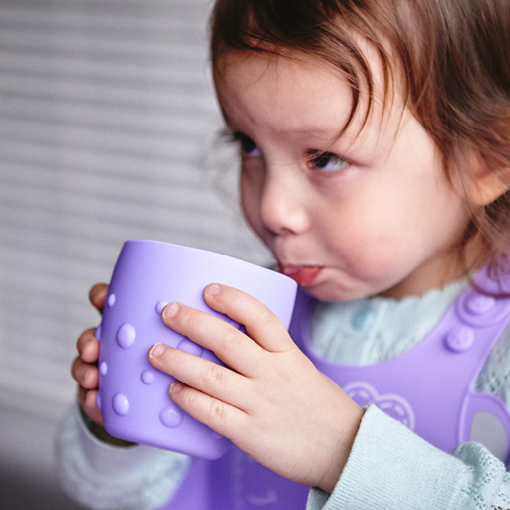 Ένα εκπαιδευτικό ποτηράκι από υψηλής ποιότητας σιλικόνη τροφίμων — ανθεκτικό, ασφαλές και κατάλληλο για παιδικά χεράκια που μαθαίνουν να πίνουν μόνα τους.