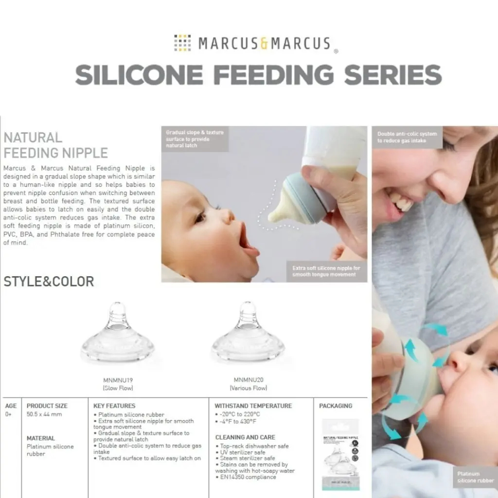 Marcus & Marcus Θηλές Σιλικόνης Πλατίνας Natural 0+ Πολλαπλής Ροής 2 τμχ.