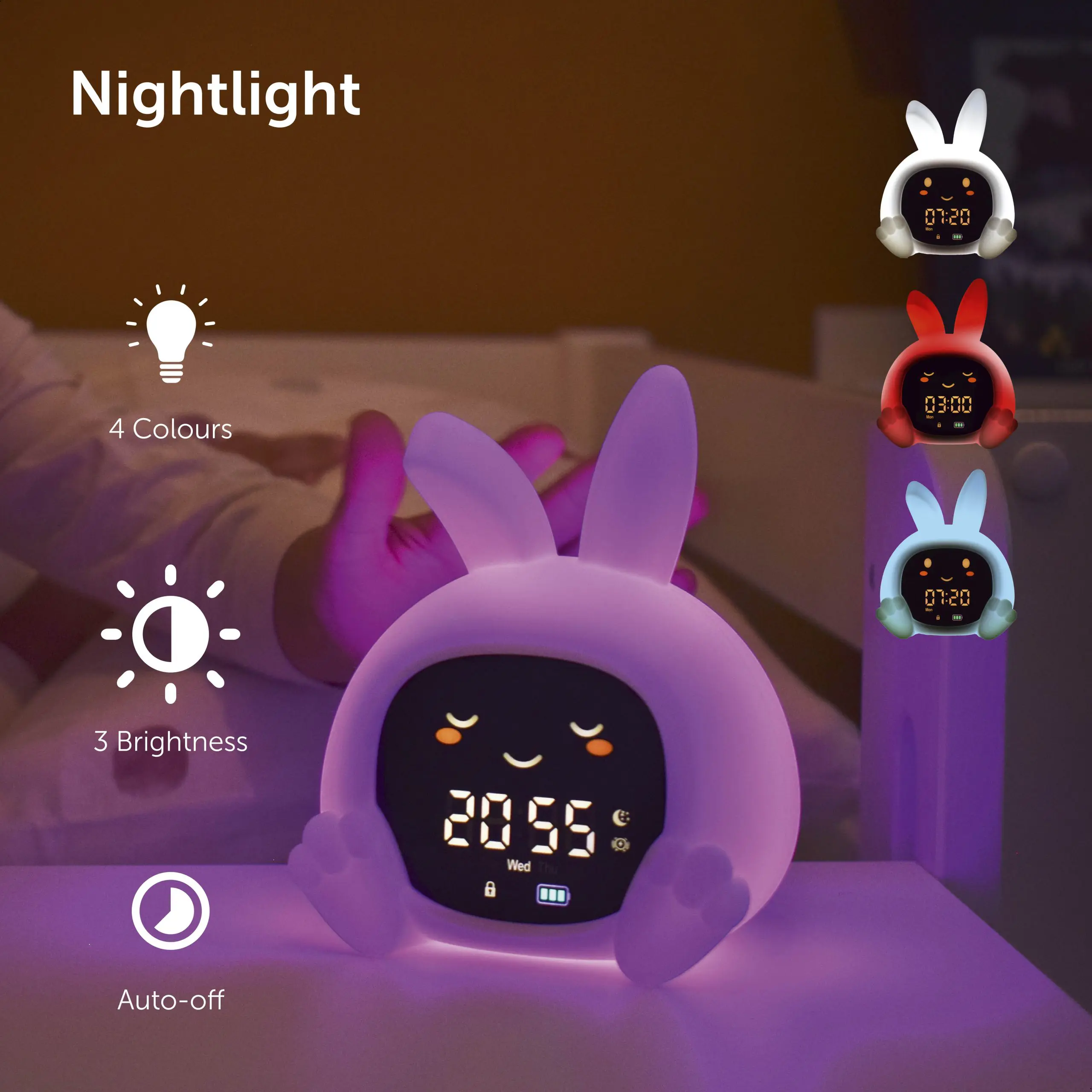 • Φωτάκι νυκτός LED με 9 χρώματα και αυτόματο σβήσιμο.