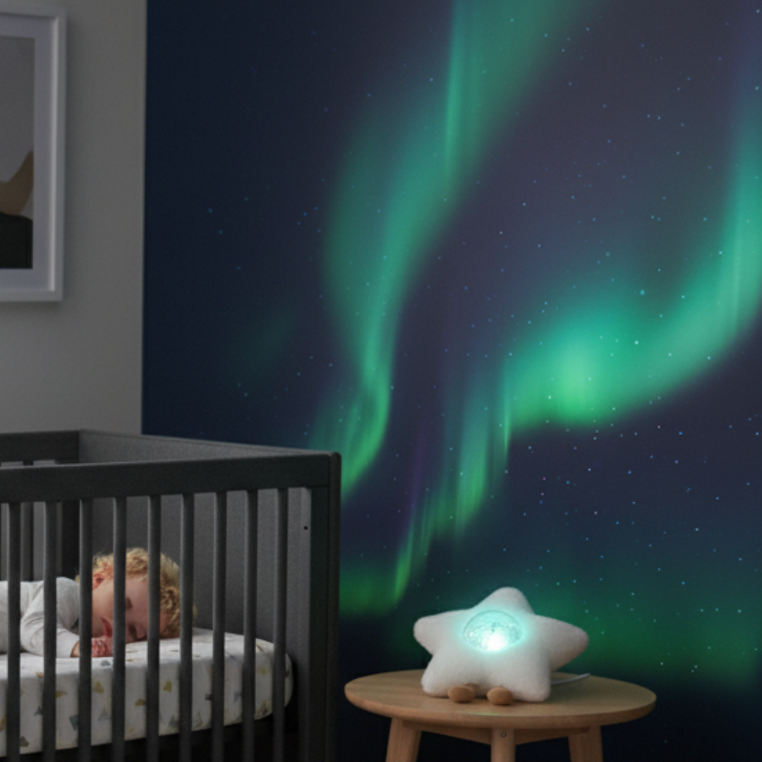 Μαγευτικό εφέ Βόρειου Σέλαος που μεταμορφώνει το δωμάτιο σε γαλήνιο σκηνικό.