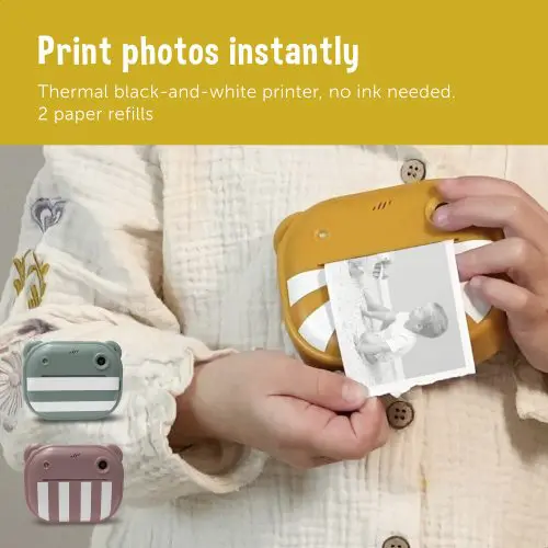 Σχεδιασμένη για παιδιά από 5 ετών και άνω, επιτρέπει στα παιδιά να τραβούν φωτογραφίες, να γυρίζουν βίντεο και να εκτυπώνουν αμέσως τις αγαπημένες τους στιγμές με το πάτημα ενός κουμπιού.