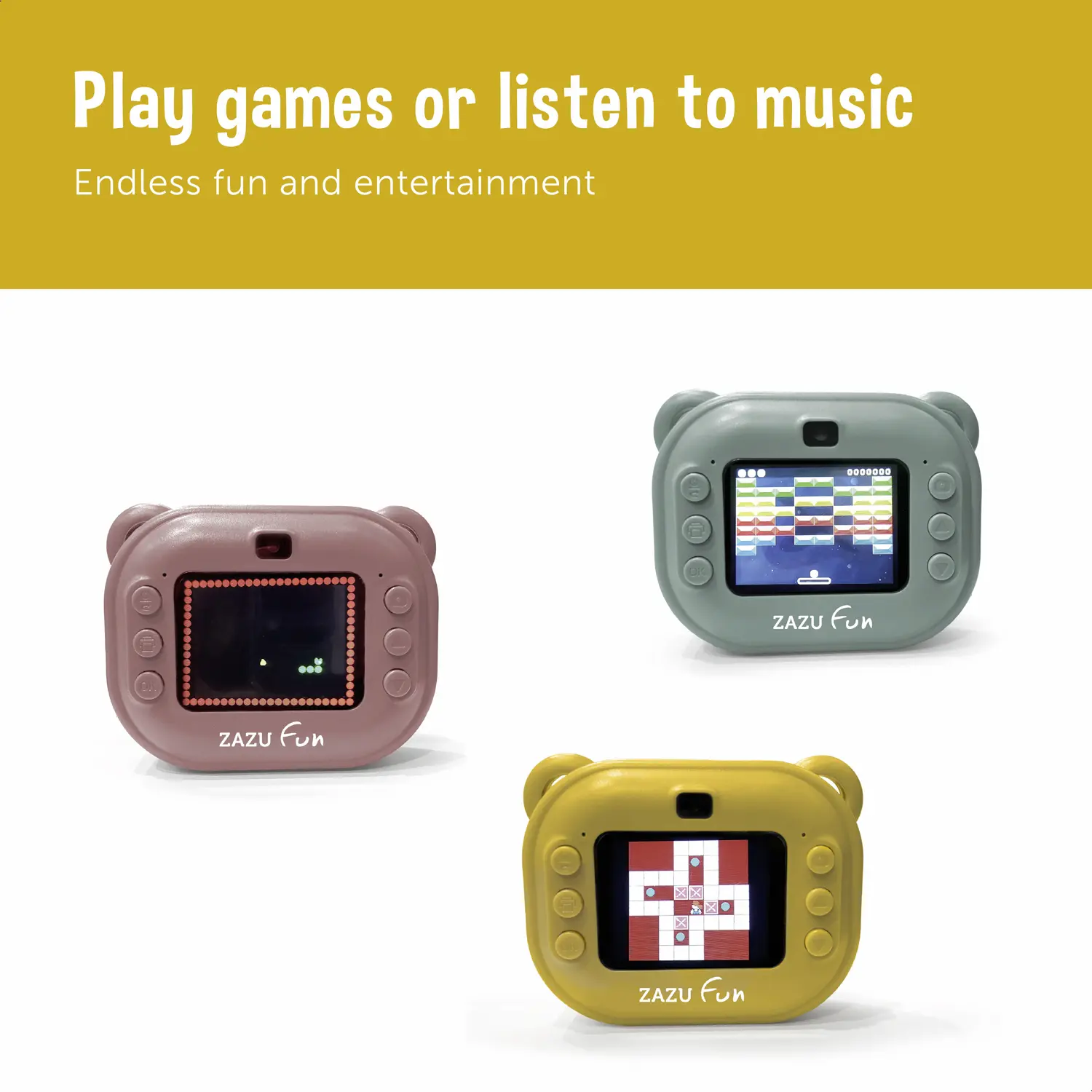 Ναι, όπως και οι υπόλοιπες συσκευές ZAZU Fun, η κάμερα διαθέτει ενσωματωμένα παιχνίδια τύπου arcade, που προσφέρουν στιγμές διασκέδασης πέρα από τη φωτογραφία και το βίντεο.