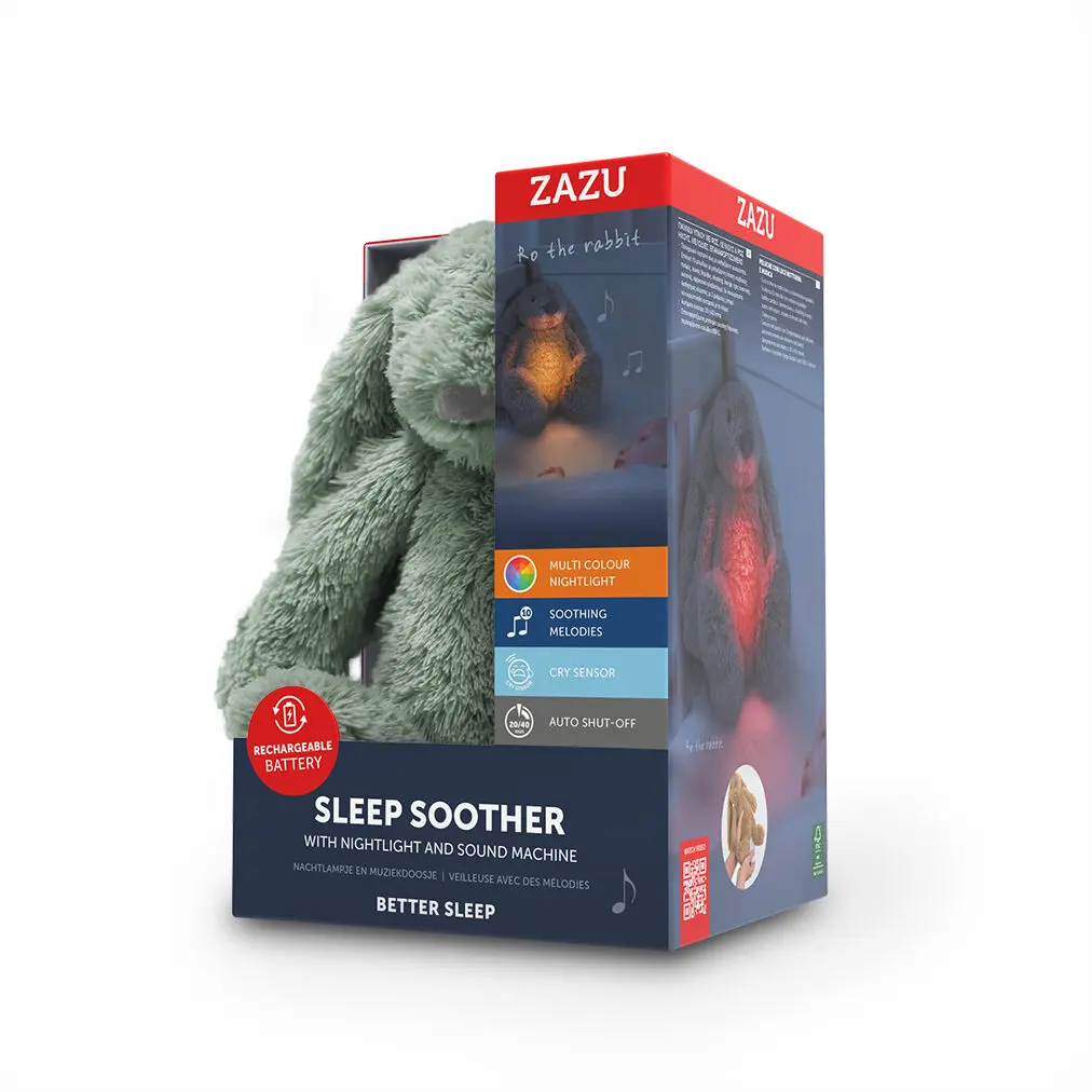 Το ZAZU RO είναι το λούτρινο λαγουδάκι που συνδυάζει ήχους χαλάρωσης, φωτάκι νυκτός και αισθητήρα κλάματος, δημιουργώντας ένα οικείο περιβάλλον για το μωρό από τη στιγμή που επιστρέφετε στο σπίτι. Με επαναφορτιζόμενη μπαταρία, προσφέρει ηρεμία και άνεση χωρίς συχνές αλλαγές μπαταριών.