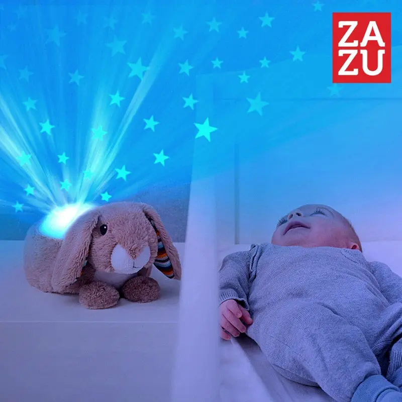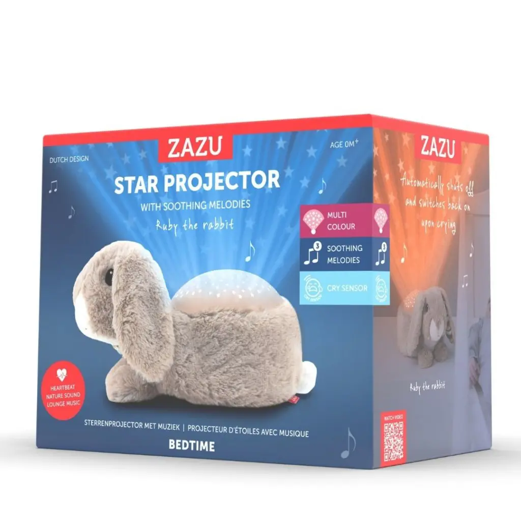 ZAZU Ruby είναι ένα λούτρινο κουνελάκι–προτζέκτορας που συνδυάζει φως, ήχο και αισθητήρα κλάματος, δημιουργώντας το ιδανικό περιβάλλον ύπνου για μωρά από τη γέννηση. Προβάλλει αστέρια στο ταβάνι, παίζει λευκούς ήχους, νανουρίσματα και ενεργοποιείται αυτόματα όταν το μωρό κλαίει.