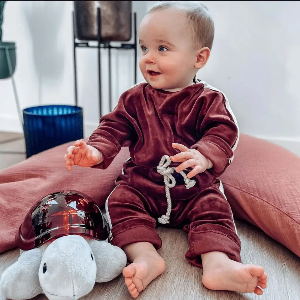 ZAZU Tim είναι ένα βραβευμένο χελωνάκι-προβολέας που δημιουργεί το εφέ ηλιοβασιλέματος στο ταβάνι του δωματίου, συνδυάζοντας φως, εικόνα και ήχους ύπνου. Με πρόγραμμα τριών φάσεων, αισθητήρα κλάματος και αποδεδειγμένη υποστήριξη στον φυσικό ύπνο, μετατρέπει το παιδικό δωμάτιο σε έναν χώρο χαλάρωσης και ασφάλειας.